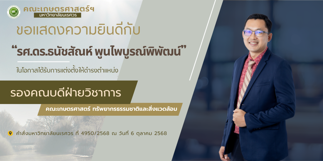 ขอแสดงความยินดีกับ “รศ.ดร.ธนัชสัณห์ พูนไพบูรณ์พิพัฒน์” ในโอกาสได้รับการแต่งตั้งให้ดำรงตำแหน่ง รองคณบดีฝ่ายวิชาการ ข่าวที่เกี่ยวข้อง:ขอเชิญเข้าร่วมอบรมเชิงปฎิบัติการ เรื่อง แนวทางการพัฒนาเล่มหลักสูตรเพื่อเป็นไปตามมาตรฐานหลักสูตรระดับ...ขอเชิญเข้าร่วมอบรมเชิงปฏิบัติการ เรื่อง “มาตรฐานความปลอดภัยห้องปฏิบัติการ (ESPReL)” (7 องค์ประกอบ)Congratulations to Dr.Weerawan Rod-in Published in International Journal on SCOPUS