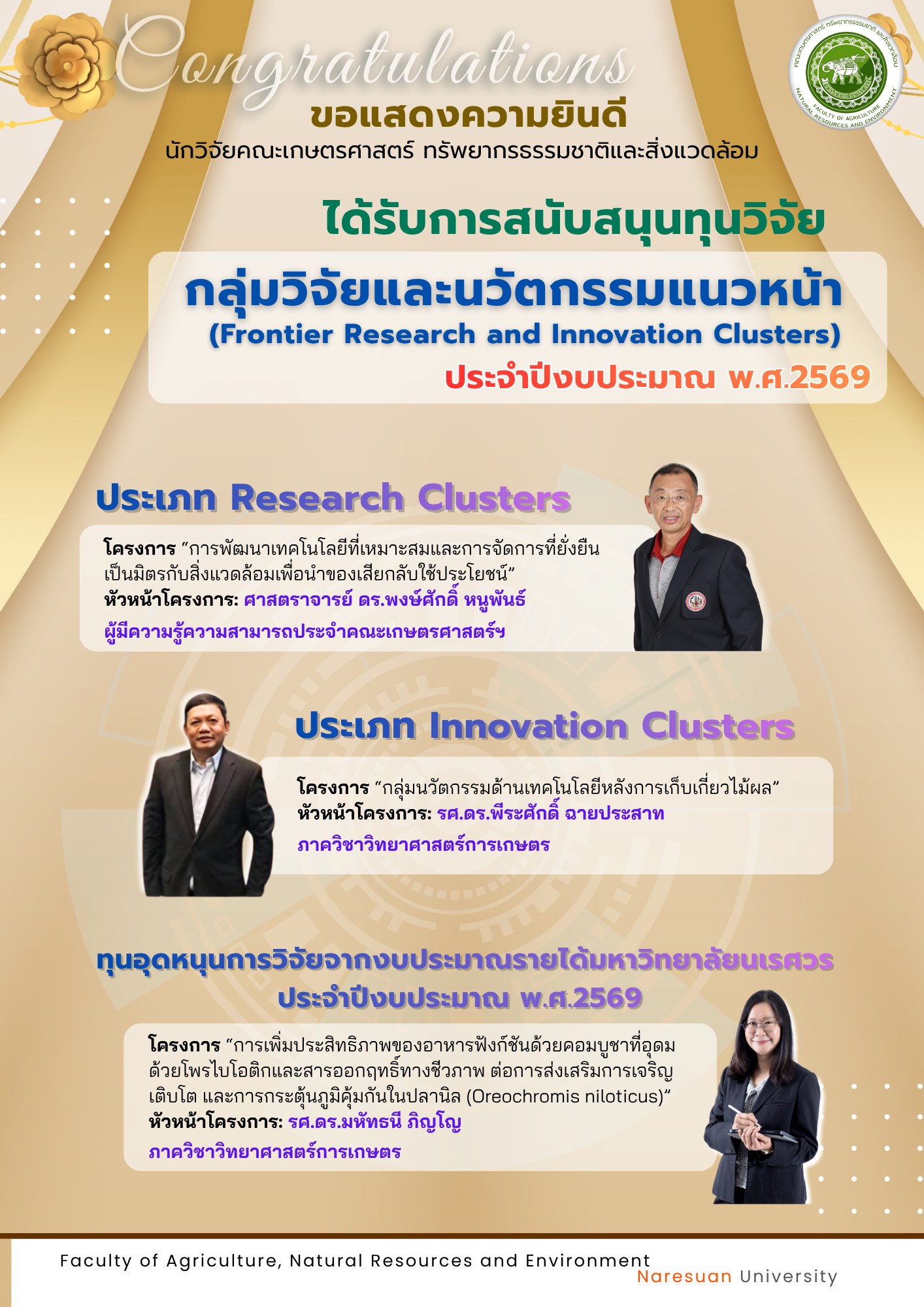 ขอแสดงความยินดีกับ นักวิจัยคณะเกษตรศาสตร์ฯ ในโอกาสที่ได้รับการสนับสนุนทุนวิจัย Fundamental Fund ประ...