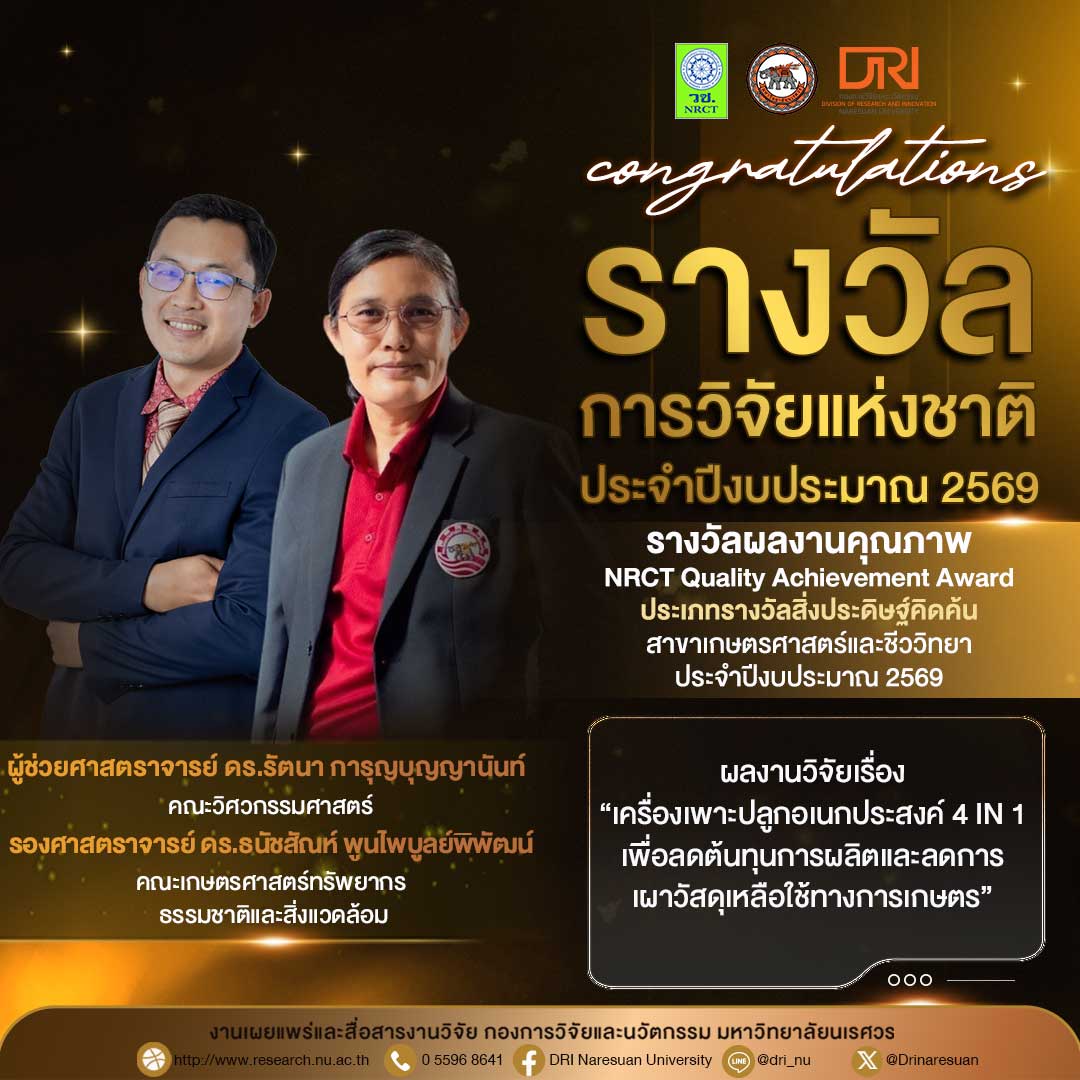 ขอขอบคุณข้อมูลจากองการวิจัยและนวัตกรรม DRI Naresuan University