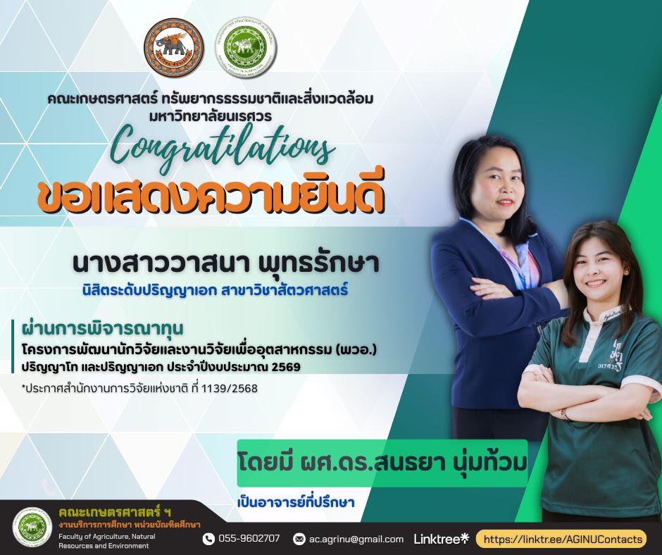 ในโอกาสได้รับได้รับทุน โครงการพัฒนานักวิจัยและงานวิจัยเพื่ออุตสาหกรรม (พวอ.) ปริญญาโท และปริญญาเอก ประจำปีงบประมาณ 2569