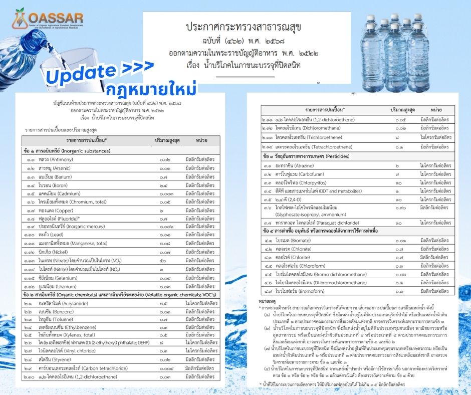 กระทรวงสาธารณสุขประกาศ “มาตรฐานน้ำบริโภคในภาชนะที่ปิดสนิท”