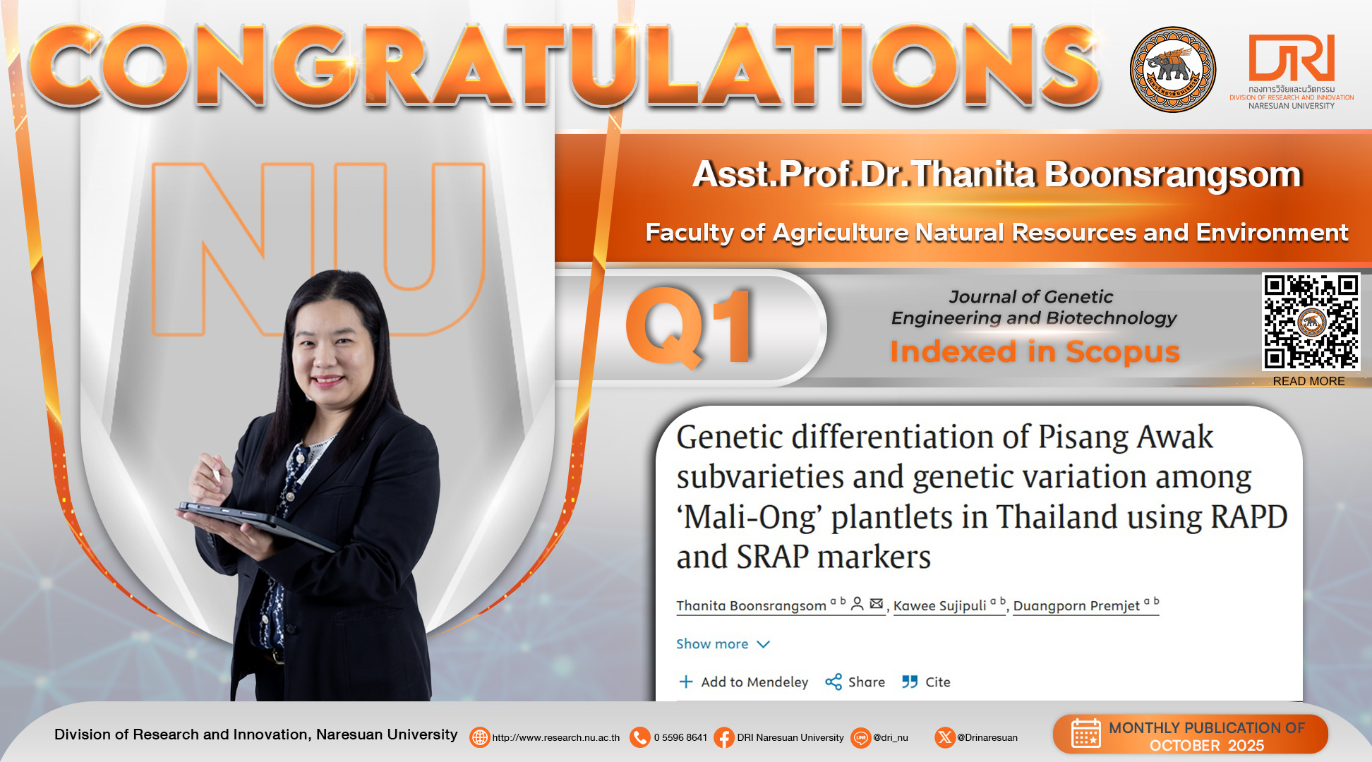 Congratulations to Asst.Prof.Dr.Thanita Boonsrangsom