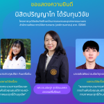 ขอแสดงความยินดีกับนิสิตได้รับรางวัลประเภท นักศึกษาสหกิจศึกษาและการศึกษาเชิงบูรณาการกับการทำงานที่มีโครงงาน/ผลการปฏิบัติงาน “รางวัลรองอันดับที่ 1” กลุ่ม สาขาวิชาวิทยาศาสตร์และเทคโนโลยีดีเด่น