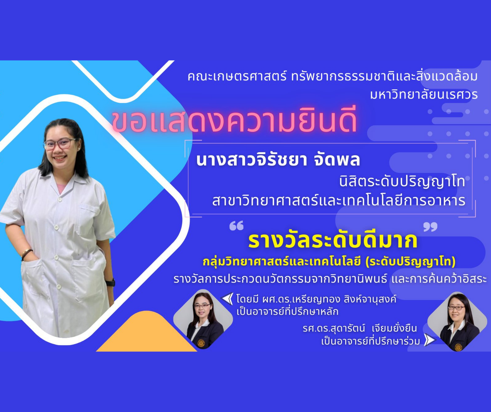 ขอแสดงความยินดีกับ นางสาวจิรัชยา จัดผล นิสิตปริญญาโท สาขาวิทยาศาสตร์และเทคโนโลยีการอาหาร