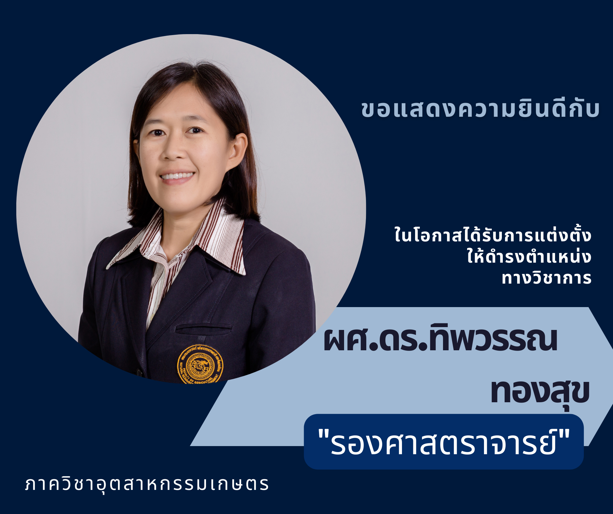 ขอแสดงความยินดีกับ ผศ.ดร.ทิพวรรณ ทองสุข