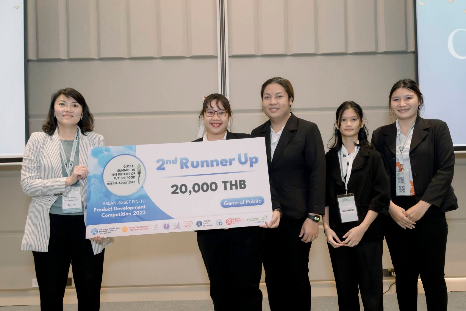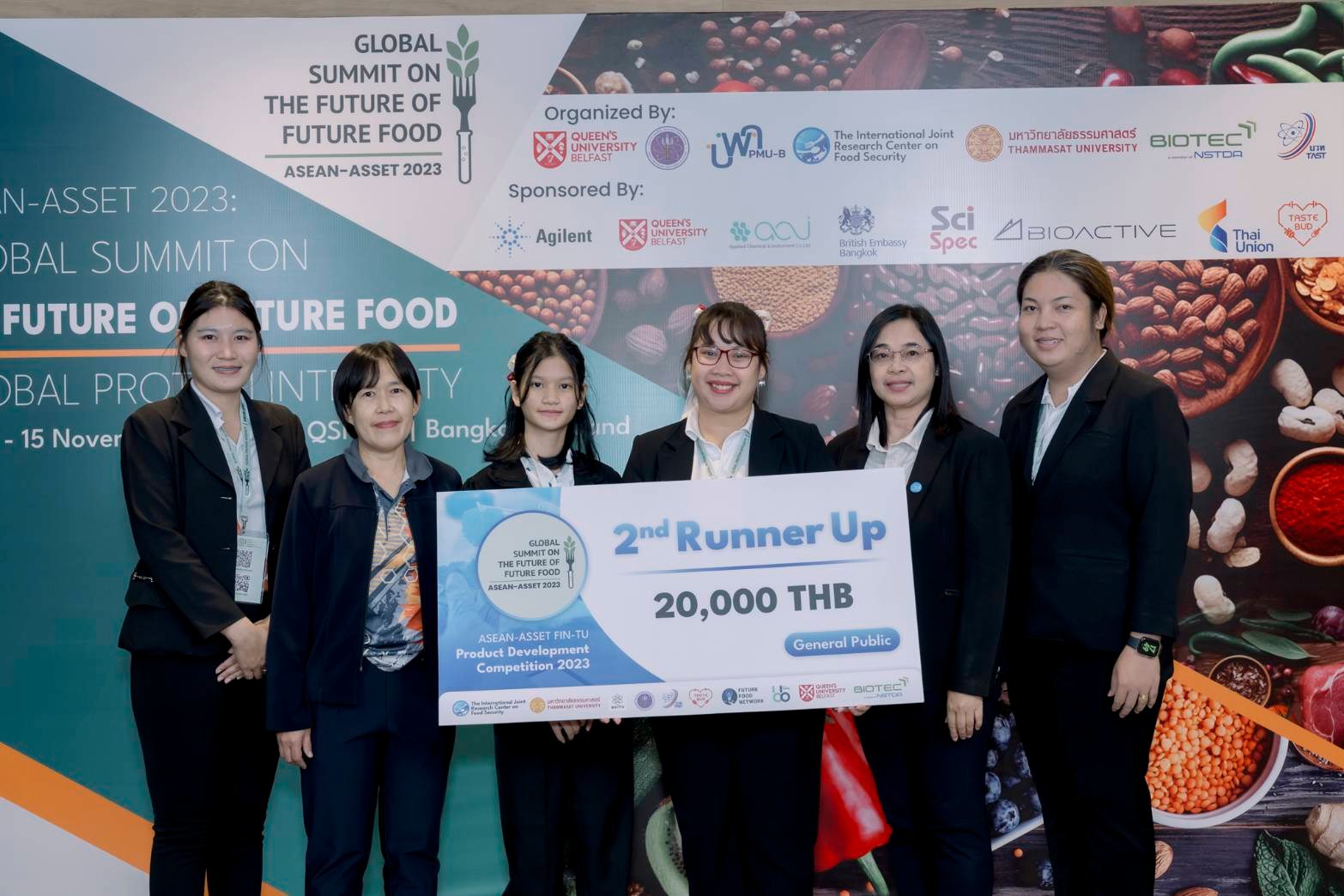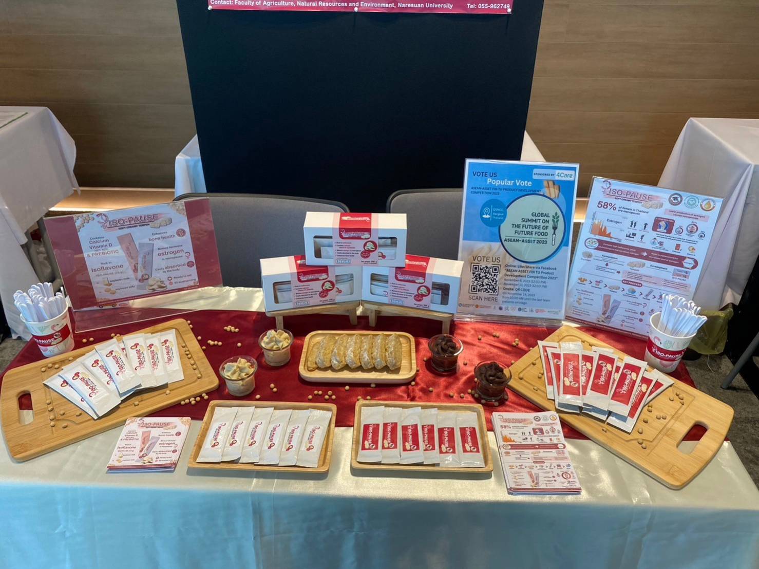 อาจารย์และนิสิต ภาควิชาอุตสาหกรรมเกษตร ได้รับรางวัลรองชนะเลิศอันดับ 2 (Second runner up) กับผลิตภัณฑ์ “ISO-PAUSE, soft creamy tempeh” คณะเกษตรศาสตร์ ทรัพยากรธรรมชาติและสิ่งแวดล้อม ขอแสดงความยินดีกับ ผลิตภัณฑ์ “ISO-PAUSE, soft creamy tempeh” ในโอกาสได้รับรางวัลรองชนะเลิศอันดับ 2 (Second runner up) ประเภท General public ผลงานของอาจารย์และนิสิตภาควิชาอุตสาหกรรมเกษตร รองศาสตราจารย์ ดร. ทิพวรรณ ทองสุข หัวหน้าภาควิชาอุตสาหกรรมเกษตร นางสาวจิรัชยา จัดพล นิสิตระดับปริญญาเอก นายวราเทพ บัวสุ่ม นิสิตระดับปริญญาโท นางสาวกัลยรัตน์ บานแย้ม นิสิตระดับปริญญาโท นางสาวณัฏฐ์ชานันท์ รักธัญญาการ นิสิตระดับปริญญาตรี โดยมี รองศาสตราจารย์ ดร.เหรียญทอง สิงห์จานุสงค์ อาจารย์ประจำภาควิชาอุตสาหกรรมเกษตร คณะเกษศาสตร์ฯ และผู้อำนวยการสถานวิจัยเพื่อความเป็นเลิศทางวิชาการด้านไขมันและน้ำมัน อุทยานวิทยาศาสตร์มหาวิทยาลัยนเรศวร เป็นอาจารย์ที่ปรึกษา จากการแข่งขัน ASEAN-ASSET FIN-TU Product Development Competition 2023 ประเภทบุคคลทั่วไป (General Public) ซึ่งจัดโดยสำนักงานพัฒนาวิทยาศาสตร์และเทคโนโลยีแห่งชาติ (สวทช.) โดยศูนย์พันธุวิศวกรรมและเทคโนโลยีชีวภาพแห่งชาติ (ไบโอเทค) ร่วมกับ มหาวิทยาลัยธรรมศาสตร์ และ Queen’s University Belfast (QUB) สหราชอาณาจักร ศูนย์วิจัยนานาชาติด้านความมั่นคงทางอาหาร (IJC-FOODSEC) จัดขึ้นเมื่อที่ 14 – 15 พฤศจิกายน 2566 ณ ศูนย์ประชุมแห่งชาติสิริกิติ์ ISO-PUASE ผลิตภัณฑ์พร้อมทานจากเทมเป้ในรูปแบบ soft cream อุดมไปด้วยไอโซฟลาโวน (Isoflavones) ที่สามารถทำงานทดแทนระดับฮอร์โมนเอสโตรเจนที่ลดลงเมื่อผู้หญิงเข้าสู่วัยหมดประจำเดือน โดย ISO-PAUSE เพียง 1 ซอง (25 g) มี Isoflavones เทียบเท่ากับน้ำเต้าหู้ 1 แก้ว หรือเต้าหู้ 2 ก้อน และมีส่วนผสมของแคลเซียมและวิตามิน D (50% Thai RDI) โดยทั้ง Isoflavones แคลเซียม และวิตามิน D เป็นสารอาหารสำคัญที่ช่วยเสริมสร้างกระดูกให้แข็งแรงและป้องกันโรคกระดูกพรุน นอกจากนี้ยังอุดมไปด้วยพรีไบโอติกส์ (Prebiotic) จากธรรมชาติและสารอาหารต่างๆ ที่สามารถดูดซึมได้ง่ายซึ่งเป็นผลมาจากกระบวนการหมักเทมเป้อีกด้วย ISO-PAUSE เป็นผลิตภัณฑ์ที่พัฒนาขึ้นเพื่อปรับสมดุลฮอร์โมนและเสริมสร้างความแข็งแรงของกระดูก สามารถป้องกันโรคกระดูพรุนทดแทนการบริโภคยาฮอร์โมน แคลเซียมและวิตามินแบบเม็ดได้ มีรสโยเกิร์ตและรสช็อกโกแลต เหมาะสำหรับผู้หญิงวัยหมดประจำเดือน ผู้สูงอายุและผู้รักสุขภาพ การแข่งขัน ASEAN-ASSET FIN-TU Product Development Competition 2023 เป็นส่วนหนึ่งของการประชุมวิชาการนานาชาติด้านความมั่นคงอาหาร ASEAN-ASSET 2023: Global Summit on The Future of Future Food ซึ่งเป็นครั้งแรกที่จัดขึ้นในทวีปเอเชีย เพื่อเป็นเวทีแลกเปลี่ยนเรียนรู้และสร้างความตระหนักเรื่องความมั่นคงขอ