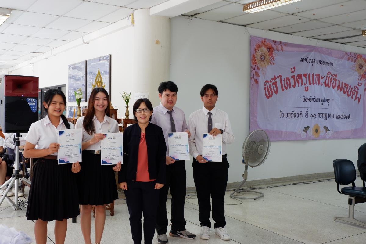 เมื่อวันที่ 11 กรกฎาคม 2567 นิสิตระดับปริญญาตรี ชั้นปีที่ 1-4 ภาควิชาอุตสาหกรรมเกษตร จัดกิจกรรมไหว้ครูและมอบติ้งให้กับนิสิตชั้นปีที่ 1 และมอบประกาศนีบัตรให้กับนิสิตชั้นปีที่ 4 ที่มีผลการเรียนดี ประกาศนียบัตรให้กับนิสิตที่ช่วยเหลือกิจกรรมดีเด่น และนิสิตที่เป็นตัวแทนภาควิชาฯ เข้าร่วมการแข่งขันประเภทต่าง ๆ เพื่อเป็นตัวอย่างที่ดีให้กับนิสิตรุ่นน้องในการพัฒนาการเรียน และการให้ความร่วมมือในการเข้าร่วมกิจกรรมประเภทต่าง ๆ ในนามภาควิชา