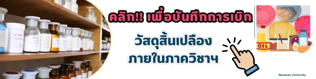 5. ก่อนลงมือปฏิบัติการ นิสิตนำแบบบันทึกการใช้วัสดุสิ้นเปลือง สำหรับวิทยานิพนธ์ฯ ส่งให้กับเจ้าหน้าที่ประจำห้องปฏิบัติการ